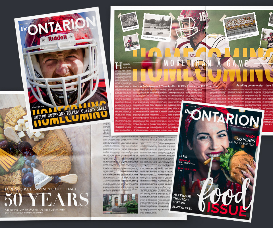 Work from my time spent at The Ontarion; from newspaper layout design to various forms of in-house and client ads. All made for print.